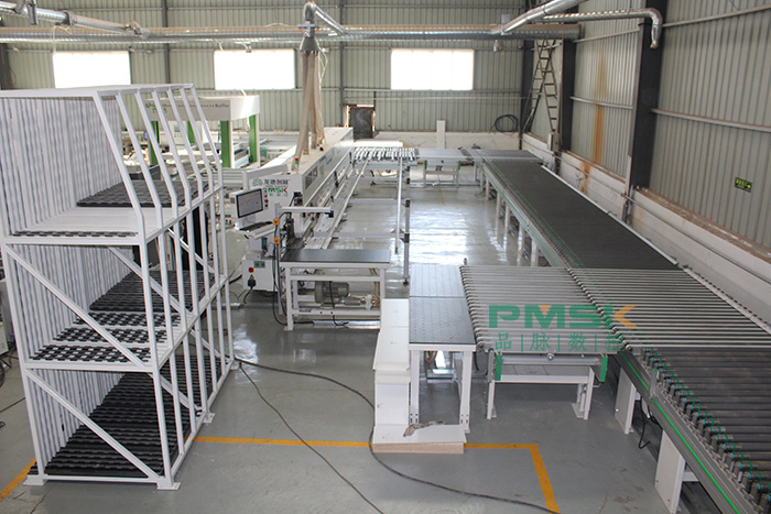 數(shù)控開料機連線,逐步增加中間相連接的設備,如開料設備、多軸搬運機器人、封邊回轉線系統(tǒng)、動力傳輸線、龍門抓料機、