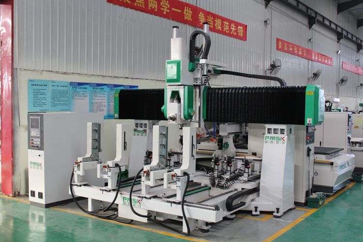 實木家具行業快速發展,數控實木加工機械成為解決實木加工困境的重要設備,三軸實木雕刻機、四軸實木雕刻機,實木五軸加工中心、數控實木開料機、數控門型機、實木門加工中心等都很大程度上解決了實木加工中的人工問題,相對于比較復雜的實木工藝,三軸數控加工仍存在一定的局限性,無法加工三維曲面,即單次只能加工一個面,如需對其他表面加工則要對工件重新裝夾,一是浪費時間,二是重新裝夾會帶來誤差。五軸數控中心是在X、Y、Z正交的三軸驅動系統內,另外加裝雙軸旋轉系統B軸和C軸。它不僅具有三軸的全部功能,同時由于增加了兩個旋轉軸,所以對加工三維曲面擁有得天獨厚的優勢,可以做到一次裝夾,復雜曲面零件一次成型。