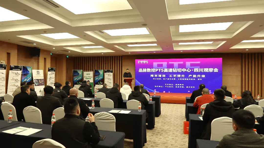 PT5高速鉆切中心四川觀摩會發表開幕致詞,感謝到場嘉賓、合作伙伴及各地客戶朋友在百忙之中抽出時間參加本次觀摩會議,共同見證品脈數控在四川市場的發展。品脈數控四川辦事處將進一步優化服務能力,提升自動化技術服務水平,為四川地區客戶提供更完善的產品與售后服務。
