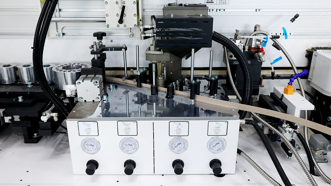 The servo-regulated pressure beam structure enables precise control, allowing for rapid adjustment of edge banding for plates of different thicknesses.