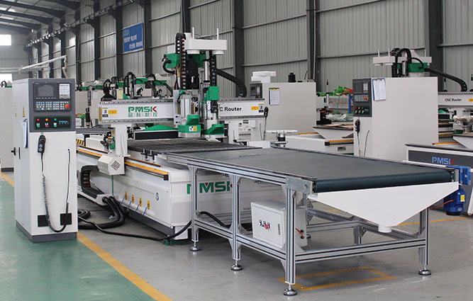 木工加工中心加排鉆是在標(biāo)準(zhǔn)加工中心加排鉆開料機(jī)的基礎(chǔ)上增加自動(dòng)上下料功能,給機(jī)器加裝了一套能夠自動(dòng)抓料的兩個(gè)手臂、一個(gè)上料放板平臺(tái)和自動(dòng)傳送下料平臺(tái)。機(jī)器在加工過(guò)程中實(shí)現(xiàn)自動(dòng)化加工,為家具廠生產(chǎn)降低了人工勞動(dòng)強(qiáng)度,提高產(chǎn)量。