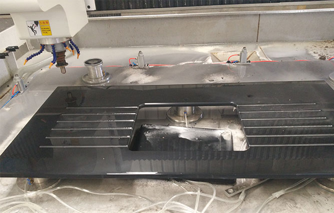 石材精加工行業,各種直線或曲線異型邊,各種高檔臺板,洗手臺板,櫥柜面板,以及各種石材雕刻作品的精加工。